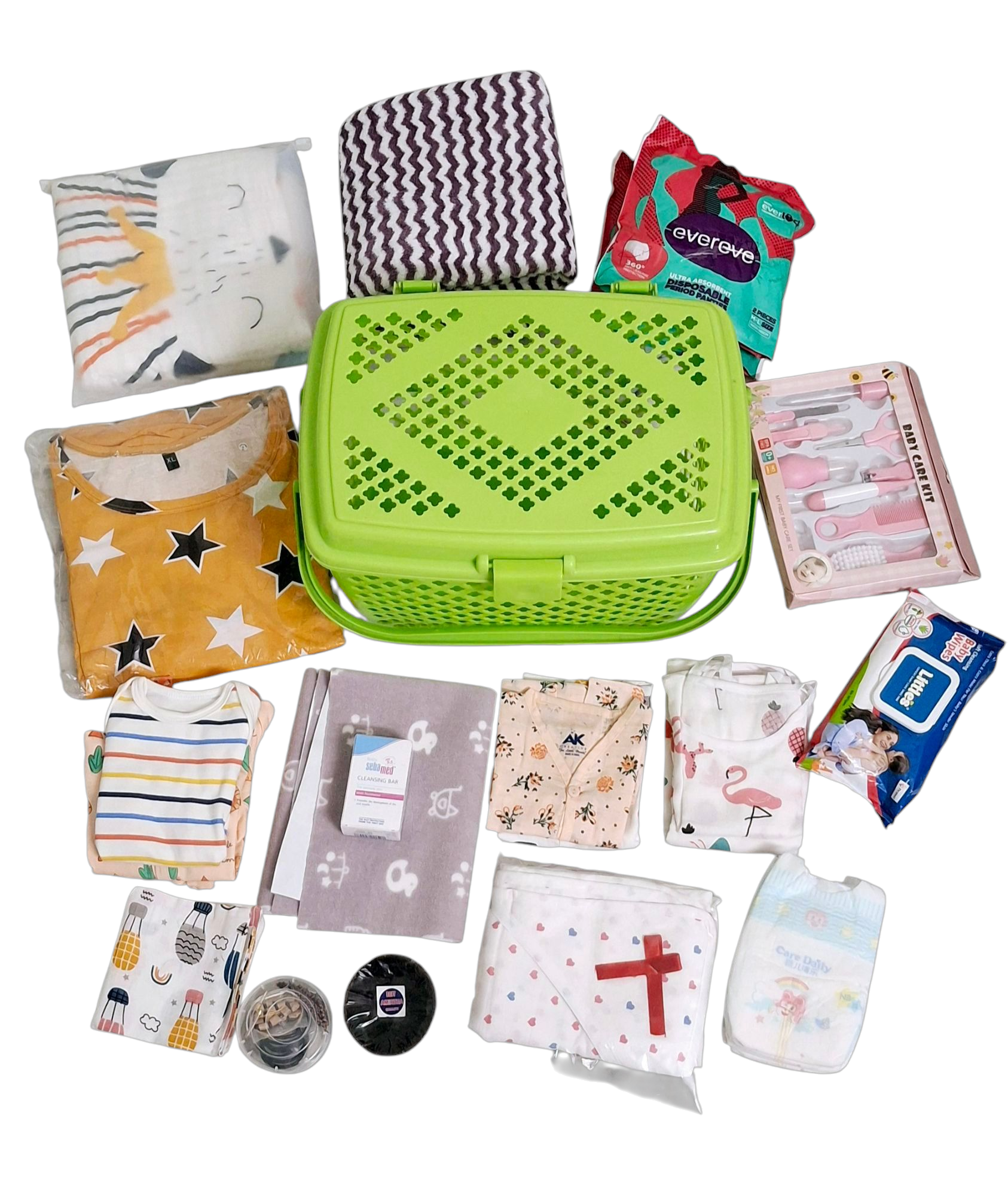 Our Hospital Basket is the perfect companion for your hospital stay, designed to keep everything you and your newborn need in one place. With multiple compartments, it offers easy organization for essentials like a soft robe, nursing pads, and toiletries for mom, plus a cozy swaddle, onesie, and mittens for baby. Made from durable yet lightweight materials, it’s easy to carry, ensuring you’re prepared for your special moment with convenience and peace of mind.